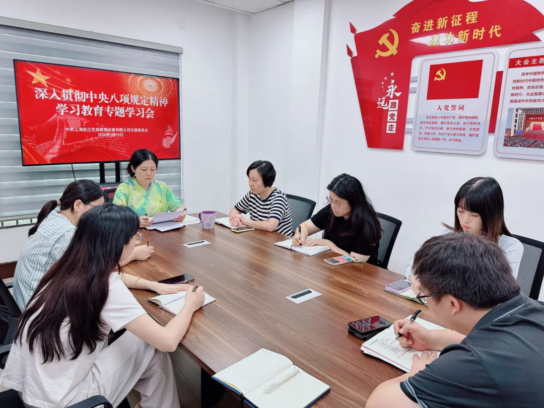 为推动深入贯彻中央八项规定精神学习教育走深走实,进一步教育引导党员干部知敬畏、存戒惧、守底线,7月10日,松江租赁房公司党支部组织支委班子成员及党员召开专题学习会,传达学习《党的十八大以来上海市深入贯彻中央八项规定精神的成效和经验》等有关文件。会议强调,作风建设是一项长期性、基础性工程,必须常抓不懈、久久为功。要切实提...